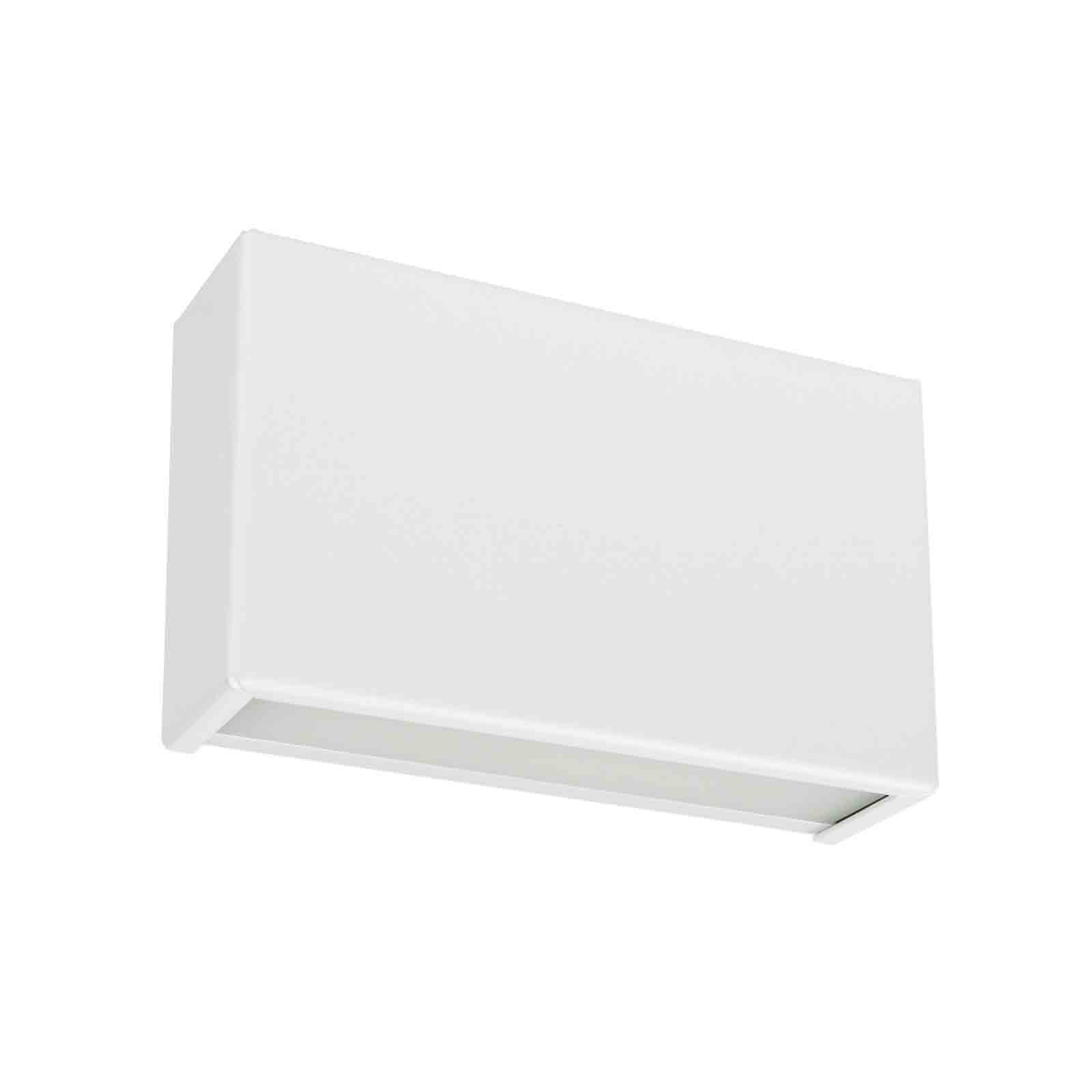 Lampada a parete a doppia emissione per applicazione indoor. La sorgente luminosa LED, di colore bianco caldo, con distribuzione luminosa General Lighting, è composta da 24 LED topled, con una CCT 3000 K ed un CRI 80; il flusso luminoso della sorgenteè di 1092 lm, con un'efficienza nominale di 121.3 lm/W.