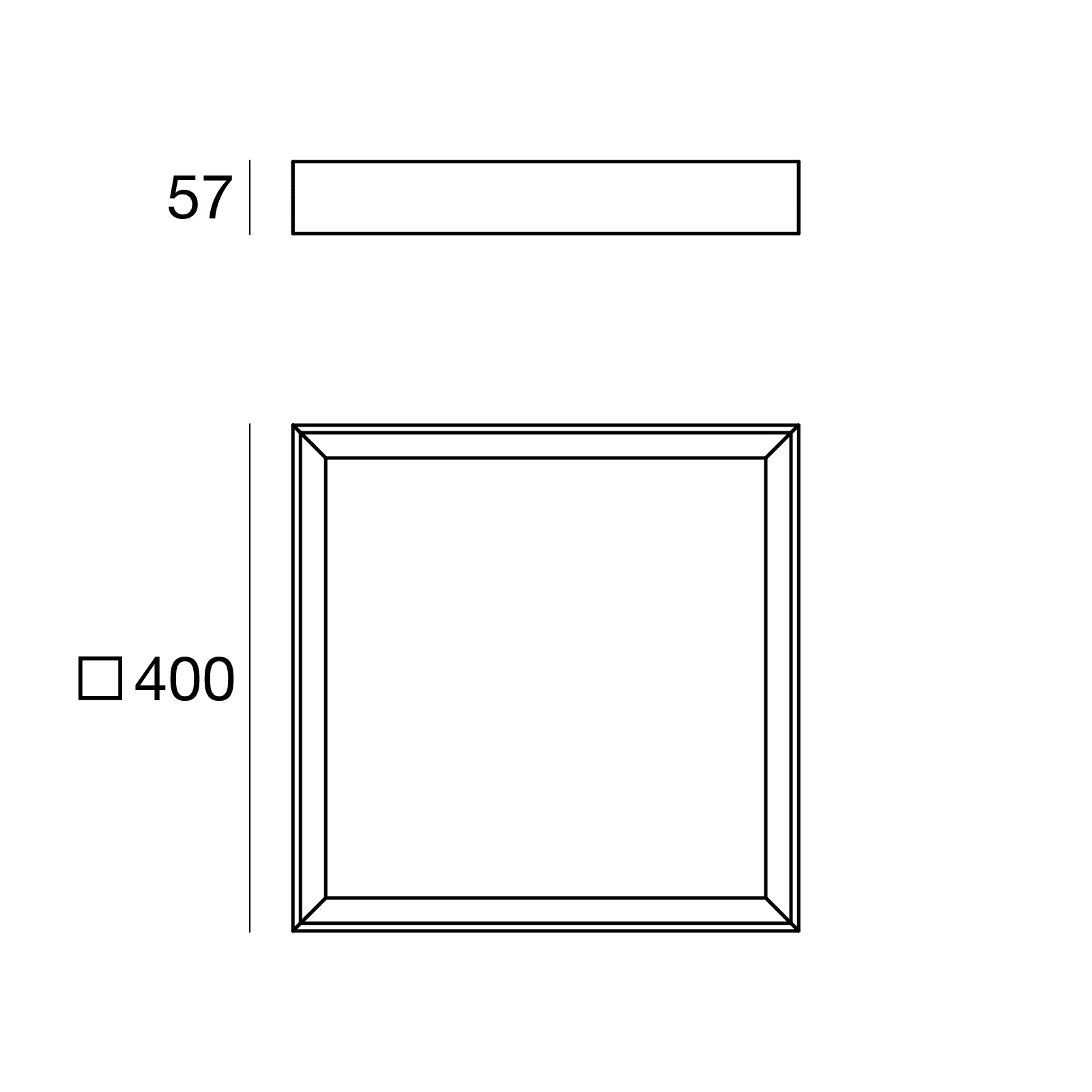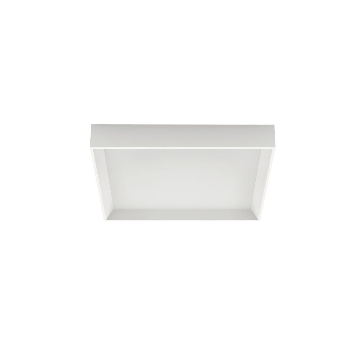 Plafone a singola emissione per applicazione indoor. La sorgente luminosa LED, di colore bianco caldo, con distribuzione luminosa General Lighting, è composta da 1 LED topled, con una CCT 3000 K ed un CRI 80; il flusso luminoso della sorgente è di 3228 lm, con un'efficienza nominale di 129.1 lm/W.