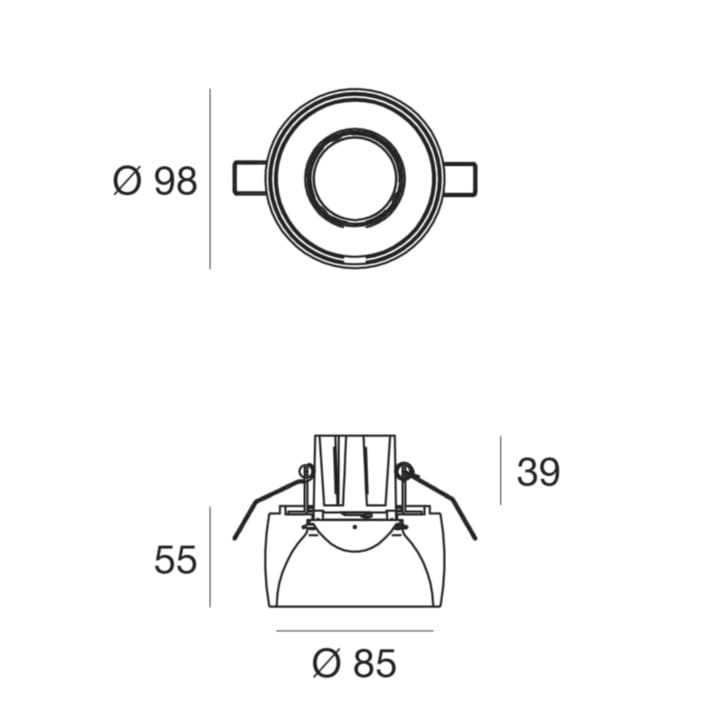 Downlights a singola emissione per applicazione indoor. La sorgente luminosa LED, di colore bianco caldo, con distribuzione luminosaGeneral Lighting, è composta da 1 LED arrayled, con una CCT 3000 K ed un CRI 80; il flusso luminoso della sorgente è di 830 lm, conun'efficienza nominale di 118.6 lm/W. Il corpo dell'apparecchio, realizzato in gesso, presenta una finitura di colore bianco; il diffusore è prodotto in policarbonato, con una lavorazione di sabbiatura. Il grado di protezione è IP20; il peso complessivo è di 0.489 kg. Il driver d’alimentazione non è fornito e deve essere ordinato separatamente. La potenza assorbita dall'apparecchio è di 7 W.