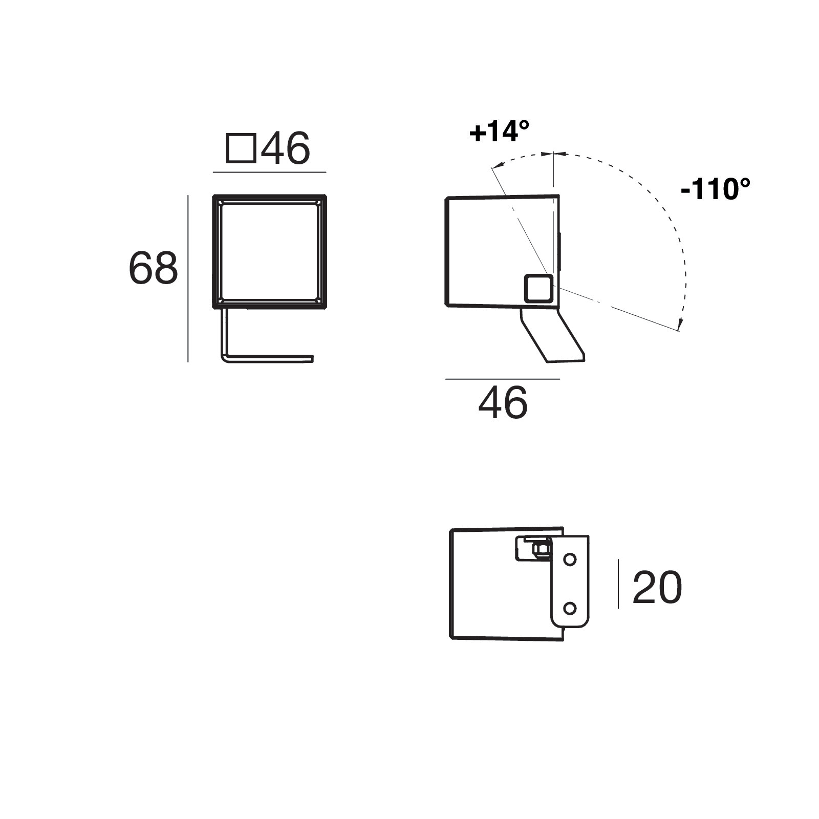 Proiettori a singola emissione per applicazione outdoor. La sorgente luminosa LED, di colore bianco caldo, con distribuzione luminosa Wide Flood, è composta da LED powerled, con una CCT 3000 K ed un CRI 80; il flusso luminoso della sorgente è di 659 lm, con un'efficienza nominale di 109.8 lm/W.Il corpo dell'apparecchio, realizzato in alluminio pressofuso en ab - 46100, presenta una finitura di colore dark brown, ottenuta tramite anodizzazione poro aperto + verniciatura a polvere; il diffusore è prodotto in vetro extra chiaro - temprato, con una lavorazione di serigrafia. Il grado di protezione è IP66; il peso complessivo è di 0.2 kg. Il driver d’alimentazione non è fornito e deve essere ordinato separatamente.La potenza assorbita dall'apparecchio è di 6 W Il cavo per l'alimentazione è incluso e presenta una lunghezza di 1 m.L'apparecchio presenta una classe di isolamento III ed è installabile a parete, soffitto o pavimento.Conforme alla norma EN 60598-1 e alle relative prescrizioni particolari.