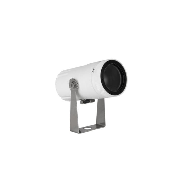 Proiettori a singola emissione per applicazione outdoor. La sorgente luminosa LED, di colore bianco caldo, con distribuzione luminosa Adjustable, è composta da 1 LED arrayled, con una CCT 3000 K ed un CRI 80; il flusso luminoso della sorgente è di 685 lm, con un'efficienza nominale di 114.2 lm/W. Il corpo dell'apparecchio, realizzato in alluminio pressofuso en ab - 46100, presenta una finitura di colore bianco ral 9003 goffrato, ottenuta tramite anodizzazione poro aperto + verniciatura a polvere; il diffusore è prodotto in vetro extra chiaro - temprato. Il grado di protezione è IP67; il peso complessivo è di 0.210 kg. Il driver d’alimentazione non è fornito e deve essere ordinato separatamente. La potenza assorbita dall'apparecchio è di 6 W.