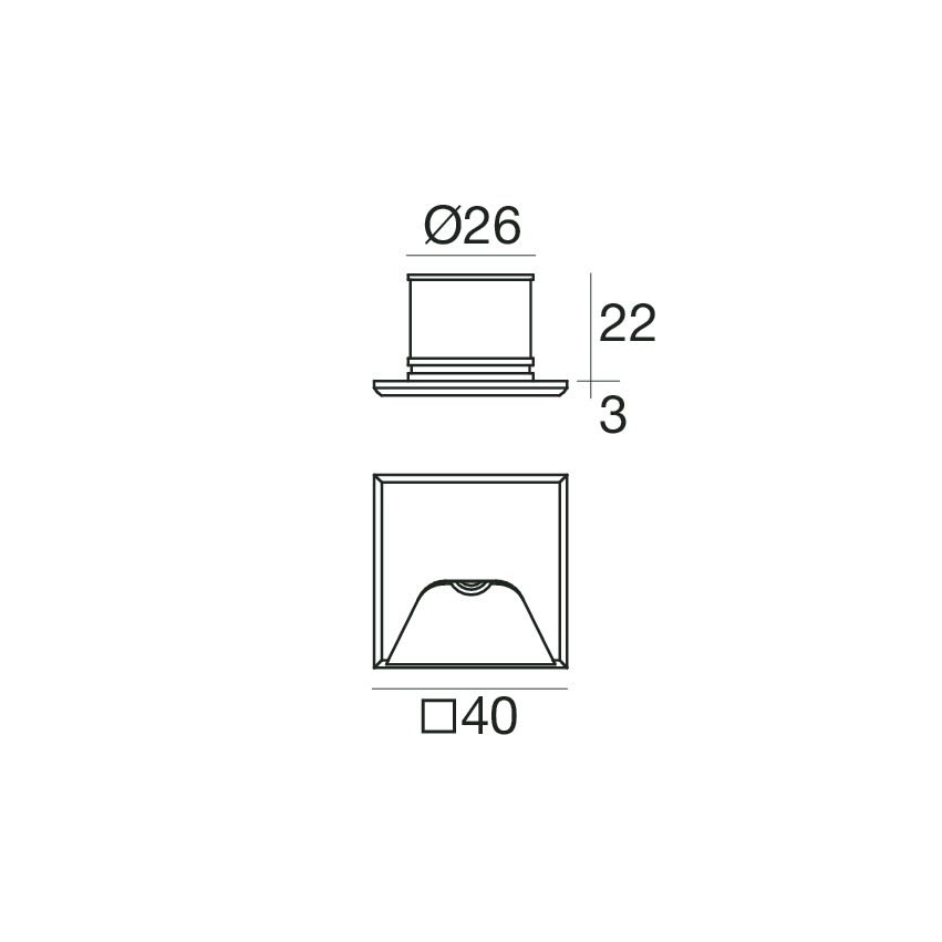 Il corpo dell'apparecchio, realizzato in alluminio 6026, presenta una finitura di colore bianco ral 9003 goffrato, ottenuta tramite anodizzazione poro aperto + verniciatura a polvere; il diffusore è prodotto in resina siliconica. Il grado di protezione è IP66; il peso complessivo è di 0.077 kg. Il driver d’alimentazione non è fornito e deve essere ordinato separatamente.