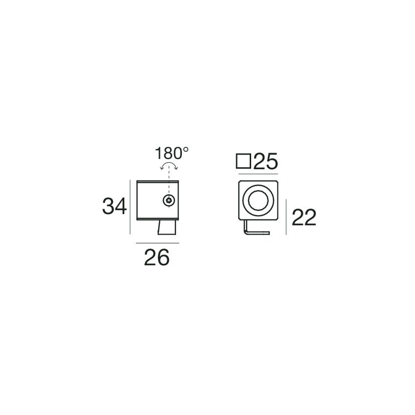 Proiettori a singola emissione per applicazione indoor. La sorgente luminosa LED, di colore bianco caldo, con distribuzione luminosa Spot, è composta da 1 LED powerled, con una CCT 3000 K ed un CRI 80; il flusso luminoso della sorgente è di 233 lm, con un'efficienza nominale di 116.5 lm/W. Il corpo dell'apparecchio, realizzato in alluminio 6026, presenta una finitura di colore bianco ral 9003 goffrato, ottenuta tramite verniciatura a polvere. Il grado di protezione è IP40; il peso complessivo è di 0.180 kg. Il driver d’alimentazione non è fornito e deve essere ordinato separatamente. La potenza assorbita dall'apparecchio è di 2,0 W. Il cavo per l'alimentazione è incluso e presenta. L'apparecchio presenta una classe di isolamento III ed è installabile a parete, soffitto o pavimento. Conforme alla norma EN 60598-1 e alle relative prescrizioni particolari.