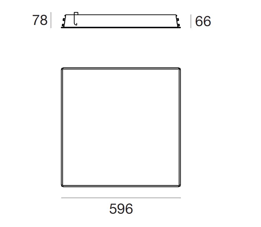 Incasso modulare a singola emissione per applicazione indoor. La sorgente luminosa LED, di colore bianco naturale, con distribuzione luminosa diffusa, è composta da 242 LED topled, con una CCT 4000 K ed un CRI 80; il flusso luminoso della sorgente è di 4940 lm, con un'efficienza nominale di 109.8 lm/W. Il corpo dell'apparecchio, realizzato in acciaio, presenta una finitura di colore bianco, ottenuta tramite verniciatura; il diffusore è prodotto in pmma. Il grado di protezione è IP40; il peso complessivo è di 3.45 kg. Il driver di alimentazione è incluso nella confezione. La potenza assorbita dall'apparecchio è di 45 W, e viene fornita da un driver specifico con range operativo 190V - 250V / 50Hz - 60Hz. Il cavo per l'alimentazione è incluso e presenta una lunghezza di 0.3 m. L'apparecchio presenta una classe di isolamento II ed è installabile a soffitto.
