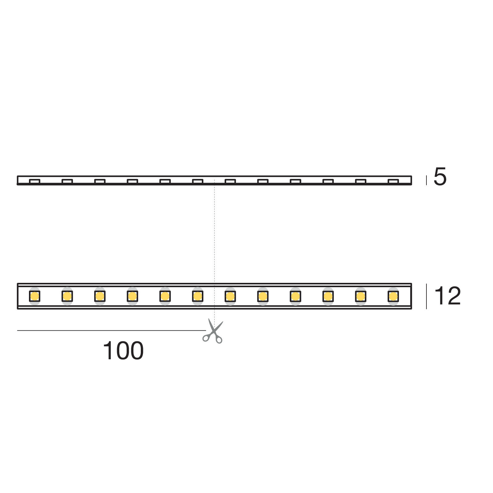 Led strip a singola emissione per applicazione outdoor. La sorgente luminosa LED, di colore bianco caldo, con distribuzione luminosa Extra Wide Flood, presenta un'emissione, è composta da 300 LED topled, con una CCT 3000 K ed un CRI 80; il flusso luminoso della sorgente è di 5639 lm, con un'efficienza nominale di 94.0 lm/W.