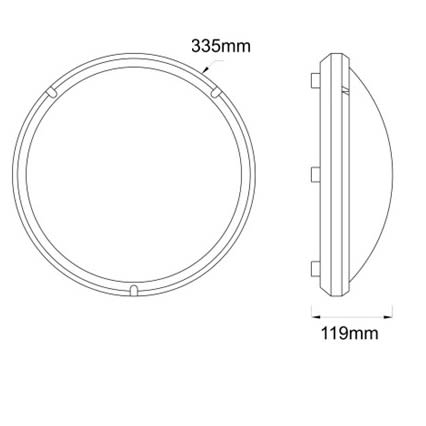 MOON LED 14W SL IP65 CENT BATT DIAM 33. Sensore di movimento e crepuscolare regolabile. ‡Funzione: Central Battery (per alimentazione centralizzata). Tipo: SL (Solo Luce, non autoalimentato). ‡Flusso luminoso della sorgente: 1600lm. Flusso luminoso dell'apparecchio: 880lm. ‡Alimentazione: 230Vac 50-60Hz. ‡Classe di isolamento: II. Classe di protezione IP: IP65. ‡Classe di protezione IK: IK10. ‡Temperatura di funzionamento: da -5°C a +40°C. ‡Colore: Grigio. Glow wire 850 °C. Installazione: parete, soffitto. Tipo: LED. Fonte luminosa: 28 LED. ‡Luce paragonabile: 36W. Temperatura colore: 4000K.