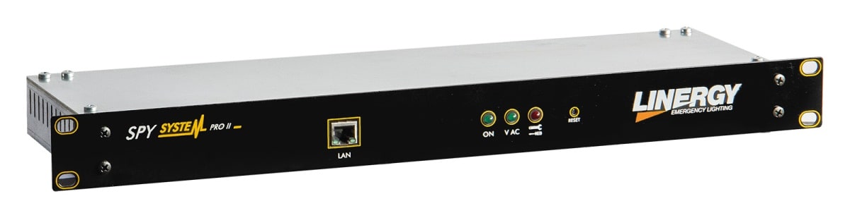 Centrale di Supervisione SPY SYSTEM PRO II per impianti di illuminazione di sicurezza munita di microprocessore in grado di eseguire automaticamente controlli centralizzati periodici per verificare lo stato di efficienza di un impianto di illuminazione di emergenza.