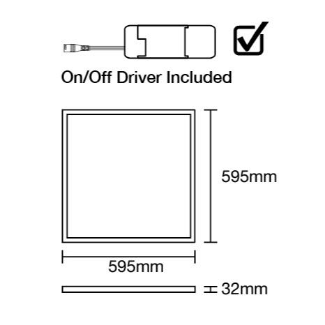 Pannello retroilluminato 600x600, On/Off, 32W, 4000K, 3520lm, 110lm/W,UGR<22, 220-240V, IP20, IK02, BA120, SDCM5(ANSI), SDCM3, -20?/+ 40?C, 50.000H (50.000h L80B10 per LED, 50.000H per driver), driver esterno TOSPO, LED Lumileds SMD 2835, Classe II, bianco (RAL9016, lucido), diffusore prismatico e corpo in alluminio+piastra posteriore SPCC, cavo 15cm con connettore femmina bianco, connettore maschio 15cm dal driver. 2 ganci di sicurezza. 5 anni di garanzia