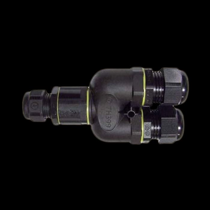 Morsettiera lineare a 3 vie a 3 poli, IP68, per cavo ø 5/13,5 mm.