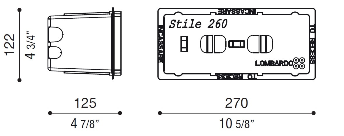 ARMATURA DA INCASSO IN TERMOPLASTICO. DIMENSIONE : 270X122X125 MM