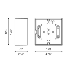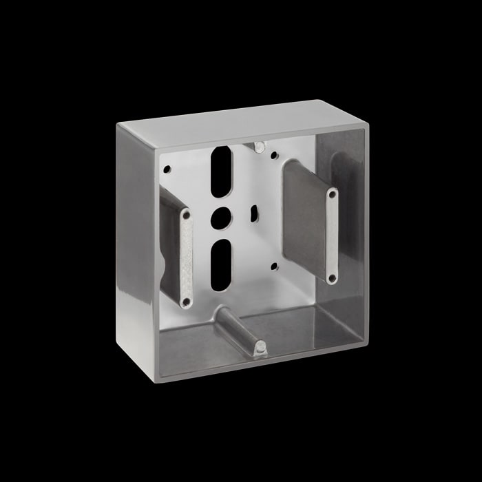 Box per montaggio sporgente a parete (non per incasso). Corpo in alluminio primario pressofuso EN-AB44100; elevata resistenza all’ossidazione grazie al trattamento di passivazione a base di zirconio e alla verniciatura con resine poliestere stabilizzata ai raggi UV.