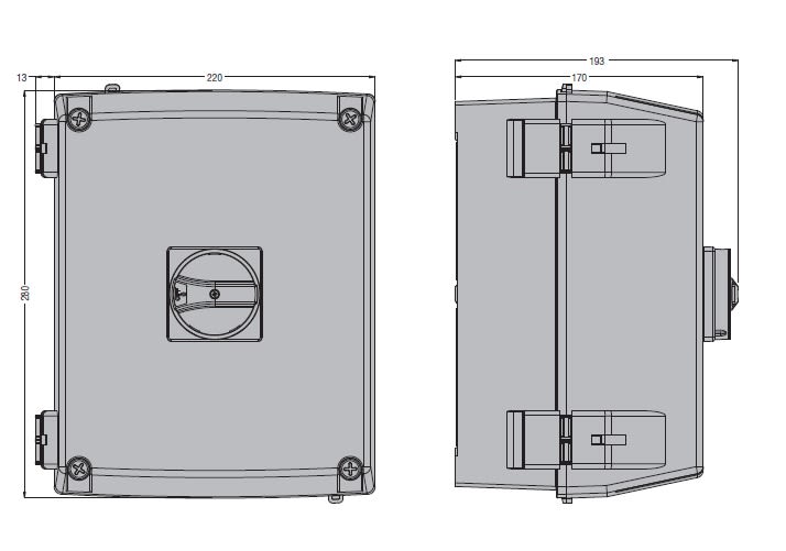INTERRUTTORE SEZIONATORE IN CONTENITORE ISOLANTE PLASTICO TIPO IEC/EN IP65, QUADRIPOLARI. CON MANIGLIA GIALLO/ROSSA, 125A