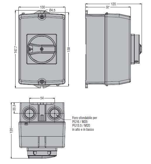 CONTENITORE VUOTO TIPO IEC/EN IP65, PER INTERRUTTORI SEZIONATORI. CON MANIGLIA NERA, PER GA016 A...GA040 A E GA040 D