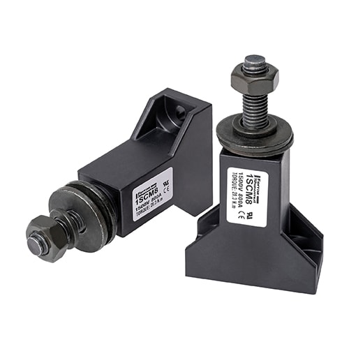 Grazie al montaggio modulare, i blocchi di fusibili per semiconduttori Mersen 1SC e 1MSC possono essere facilmente adattati alle diverse lunghezze dei fusibili. La disponibilita di entrambe le versioni a perno e con connettore integrato a dissipazione dicalore consente allutente di scegliere il tipo di terminazione preferito. Le versioni con connettore integrato garantiscono una maggiore dissipazione del calore. I componenti di montaggio sono forniti con i blocchi