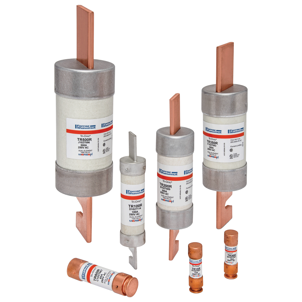 I fusibili ritardati a limitazione di corrente Tri-Onic TR-R sono progettati per proteggere motori, trasformatori, apparecchiature di servizio, alimentatori e circuiti derivati dai sovraccarichi di corrente. Le caratteristiche di temporizzazione dei fusibili TR-R gestiscono in tutta sicurezza le normali correnti di spunto e di avviamento associate ai moderni motori e trasformatori.