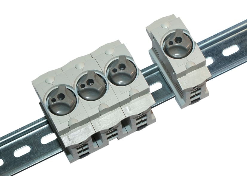 INNOZED® è una base per cartucce di fusibili D01 e D02. È progettata per consentire il rapido montaggio su guide DIN in morsettiere di distribuzione e quadri elettrici, per applicazioni residenziali e industriali.INNOZED® è dotato di un coperchio contro il contatto diretto che previene la folgorazione. Luso di barre dinterconnessione a pettine consente di controllare visivamente il posizionamento dei cavi. Luso di barre dinterconnessione cablate nellarea inferiore del terminale agevola linserimento dei cavi e il controllo visivo dei punti di terminazione. INNOZED® consente di configurare la connessione in modo flessibile. I morsetti di fissaggio consistono di due scomparti separati che garantiscono la connessione sicura di due diversi cavi. È possibile utilizzare cavi di sezioni diverse comprese tra 4 mm² e 35 mm² oppure due cavi simili di sezione fino a 16 mm².