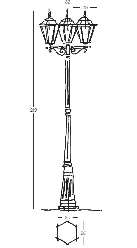 NOBILE ITALIA - NOB2002/11/NE LAMPIONE TRE LUCI ESAGONALE MEDIA NE - 2002/11/NE