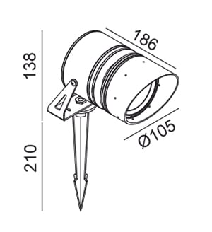 Proiettore LED con staffa e picchetto per installazione a pavimento. LED CREE. Life time 50.000h (rendimento 70%). Corpo in alluminio anodizzato. Cavo in neoprene H05RN-F 3x1mm2 di 1,5m. Alimentatore 220-240V 50/60Hz incluso. LED 29W 2300Lm 42° 4000K.