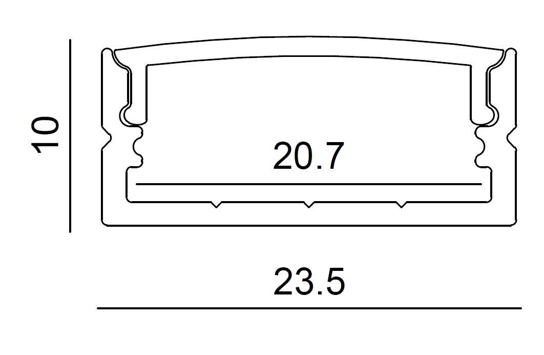Profilo in alluminio da superficie per striscia LED con diffusore trasparente di 2m. Tappi e clip di fissaggio inclusi.Possibile inserimento doppia striscia LED IP20 da 4.80W/m.