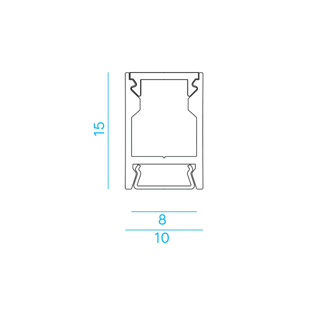 BARRA/STRIP/18/S - Profilo in alluminio da superficie per striscia LED 5mm code 80200, con diffusore opale di 2m. Tappi (4 pz) e clip di fissaggio (4 pz) inclusi.