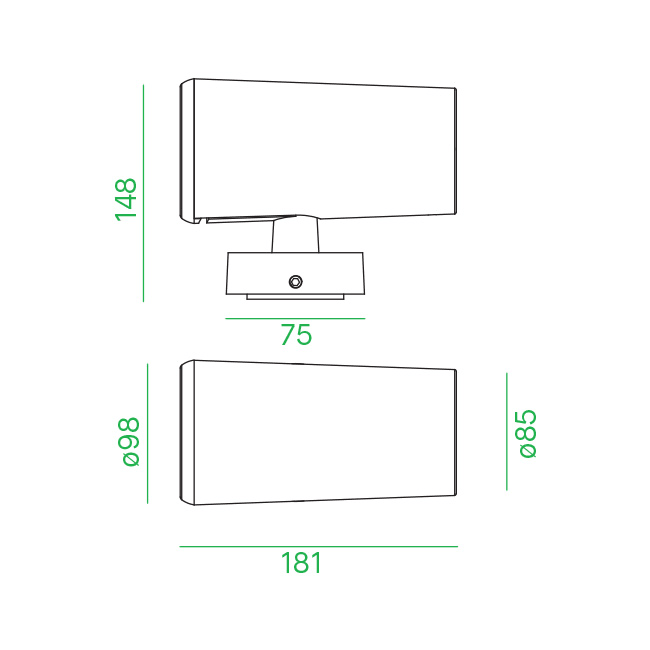 Proiettore LED con staffa o basetta per installazione a parete, soffitto e pavimento. LED CREE. Life time 30.000h (rendimento 70%). Corpo in alluminio pressofuso verniciato bianco, grigio o antracite. Vetro temperato trasparente. Alimentatore 220-240V - 50/60Hz incluso. LED 20W 3000K 2200lm 30°.