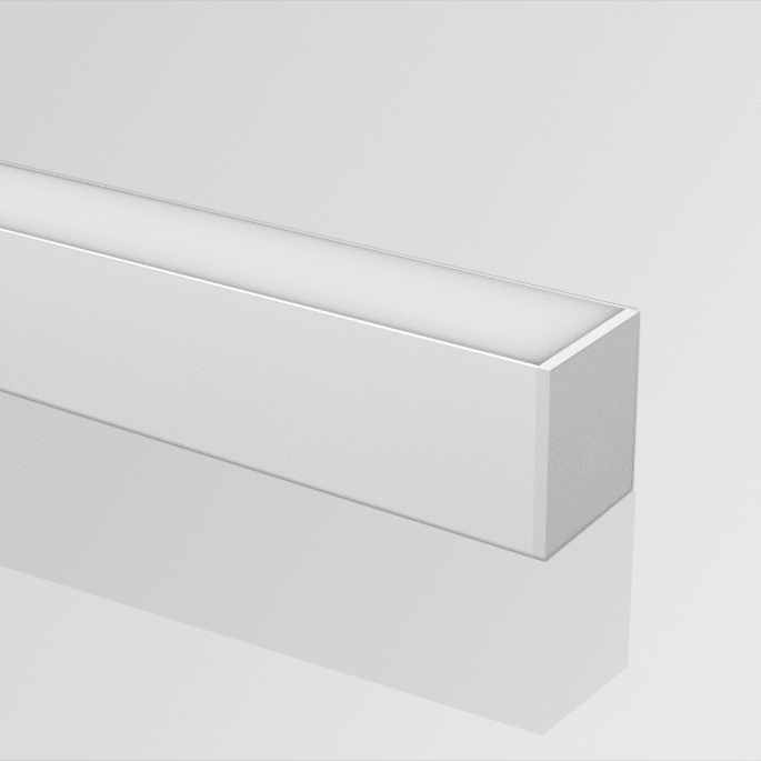 PA/01 - Profilo in alluminio da superficie per striscia LED con diffusore trasparente di 2m. Tappi e clip di fissaggio inclusi. Alluminio verniciato bianco. Disponibile Kit sospensione.