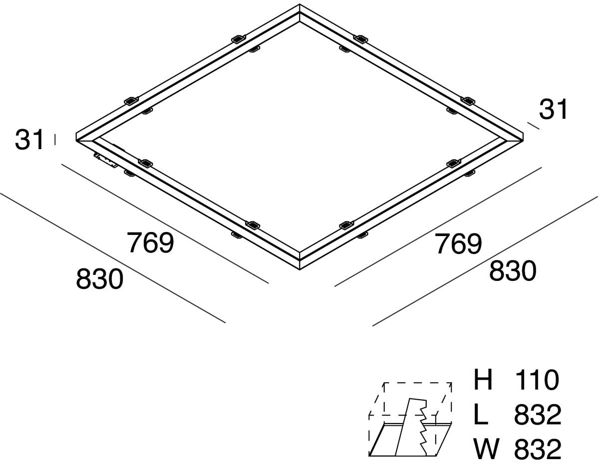 NOVALUX SPA - NOX103351.01 P-30 READY QUADRATO 830x830 Apparecchio LED quadrato per installazione ad incasso. Garanzia 5 anni.