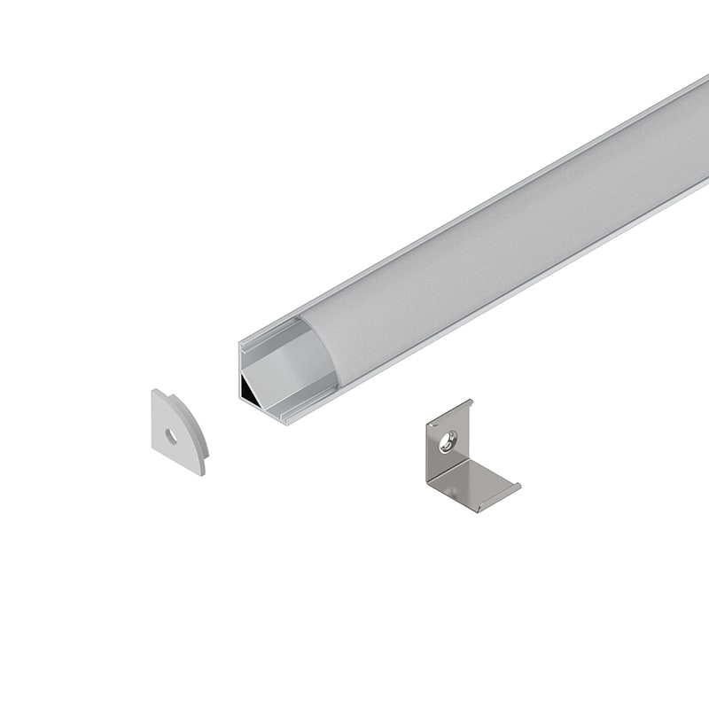 Profilo dissipante per Strip LED in lega di alluminio anodizzata naturale, testate di chiusura in polimero termoplastico, schermo diffusore ad inserimento a scatto in PMMA opale. Schermo diffusore, testate di chiusura e n?4 staffe di fissaggio inclusi. Strip LED e alimentatore 24Vdc da ordinare a parte. Non esporre a intemperie o luce solare diretta e non inserire in materiale isolante.