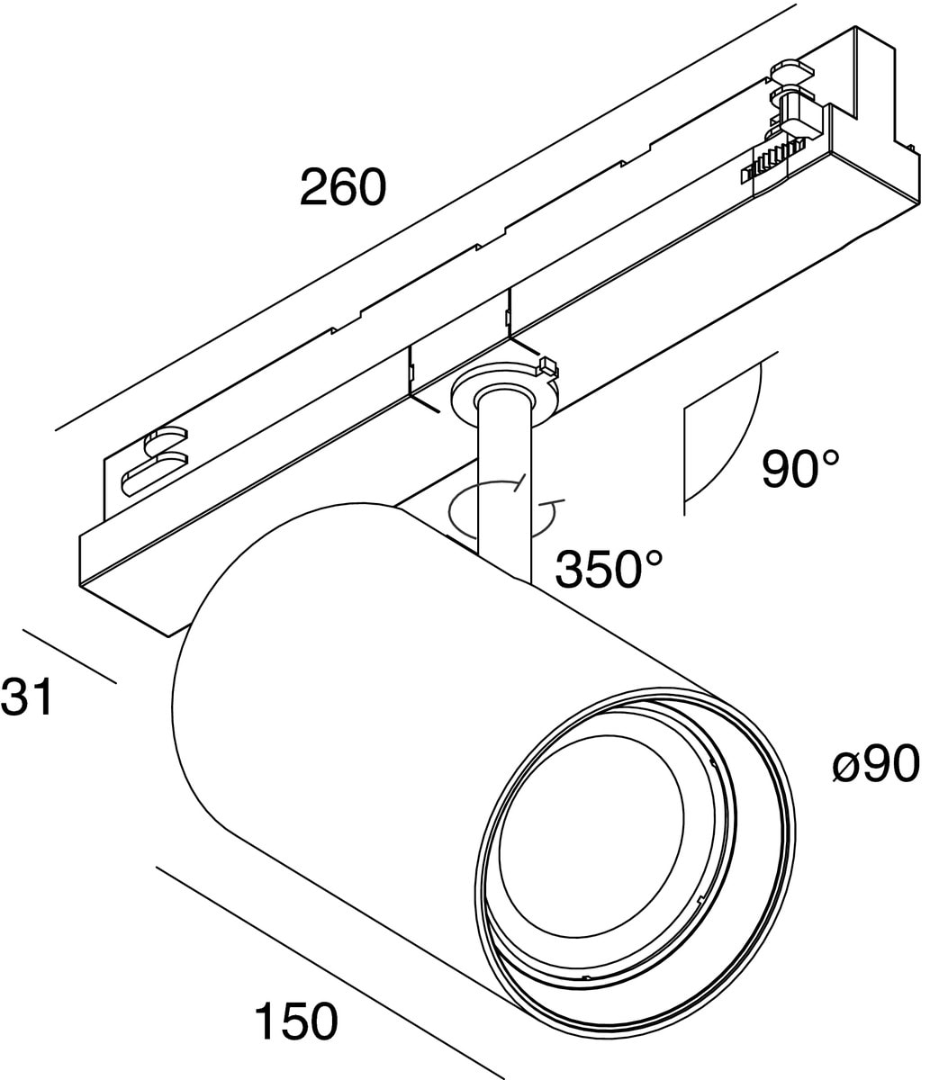 NOVALUX SPA - NOX106116.01 DAL? 38W: Spot LED orientabile per installazione a soffitto su binario elettrificato All-Track. Ottiche intercambiabili 15? e 38?. Garanzia 5 anni.