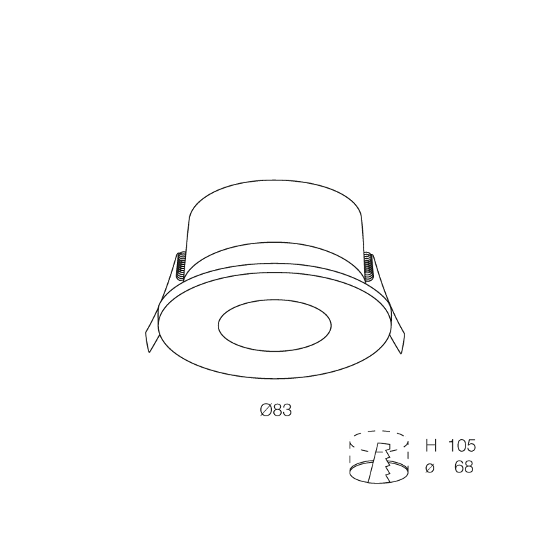 SPIRIT: Faretto IP54 tondo per installazione ad incasso su controsoffitto in cartongesso o pannelli con struttura a vista. Con cornice in battuta o con flangia per incasso a rasamento, in alluminio Verniciato bianco o nero e vetro trasparente.