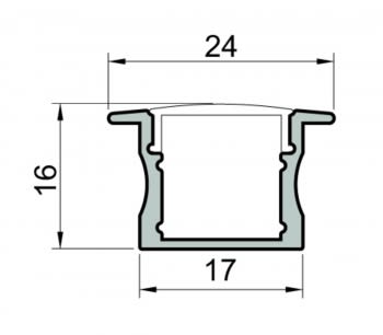 Profiled kit incasso H16 Profilo dissipante di lunghezza 2 metri, schermo opale ad inserimento a scatto e testate di chiusura inclusi. Strip LED e alimentatore 24Vdc da ordinare a parte. Per installazione a incasso. Colore: bianco.