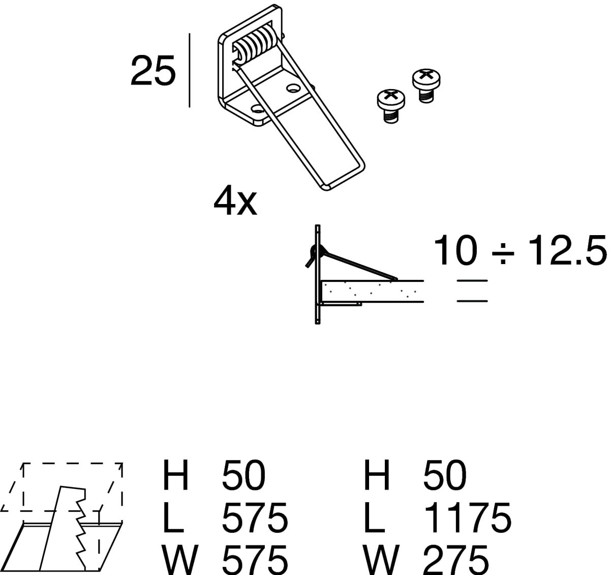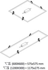 Kit molle per installazione a semi-incasso per The panel 2. Per versioni 600x600 e 1200x300, per installazione in battuta in cartongesso di spessore 10-12,5 mm.