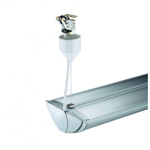 Kit di sospensione/alimentazione regolabile (1 pz.) L 1200mm. Cavo alim. 3x1,5 Cavi in acciaio con staffe di fissaggio a plafone in ottone, rosone in ABS bianco (RAL 9016), cavo di alimentazione con guaina bianca (RAL 9016).