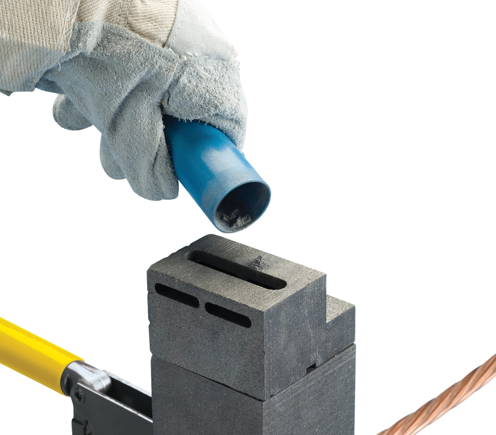 Le combinazioni comprendono principalmente una varietà di componenti in ossido di rame e alluminio. Viene utilizzato principalmente nelle applicazioni di messa a terra e collegamenti. Il materiale di saldatura si trova nella parte superiore del tubo, mentre il materiale iniziale è nella parte inferiore. Imballato in base alle dimensioni in tubi di plastica con tappo trasparente. I tubi sono imballati all’interno di scatole di plastica insieme ai dischi di metallo. Ogni connessione saldata utilizza un solo disco. Non esplosivo. Non soggetto all’accensione spontanea. Vedere le informazioni specifiche sulla connessione nVent ERICO Cadweld per determinare i requisiti del materiale di saldatura.