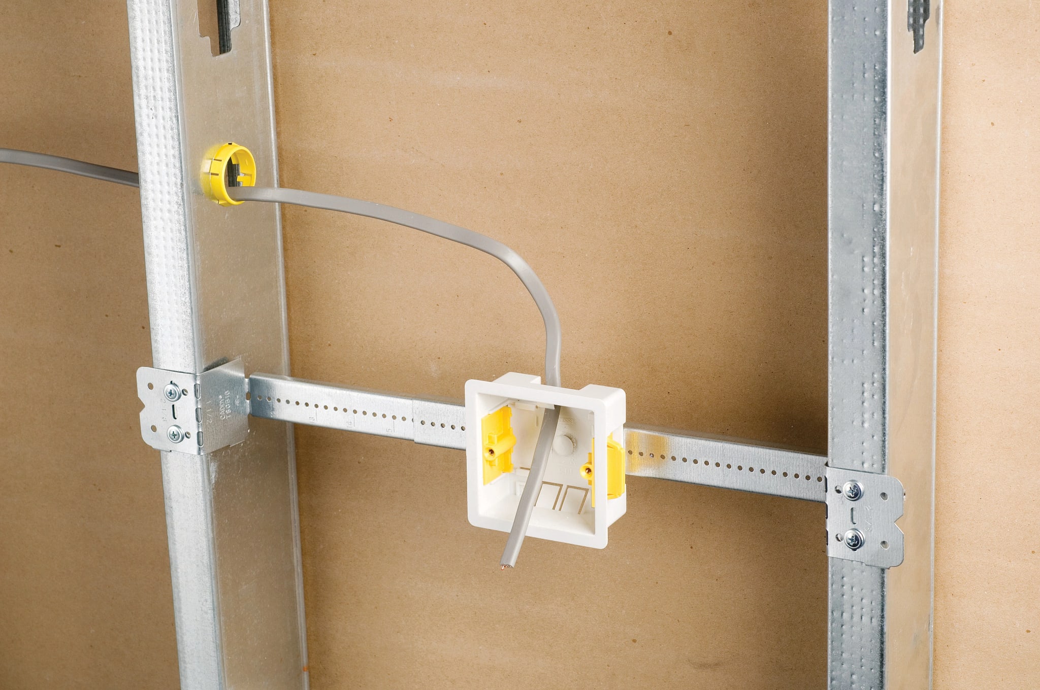 La staffa telescopica per avvitatore per scatola accelera il fissaggio preciso della scatola o del conduit tra montanti. Può fissare più scatole o condotti. Regolabile 15 3/4"-25"(400 mm - 635mm) per spaziatura dei montanti non standard.