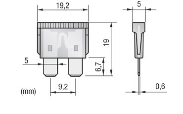 Fusibile AL lama, rapidi, tensione 32Vdc, capacità di rottura 1000A, contatto in ottone stagnato 6,3mm, corpo in plastica colorata. NORME DI RIFERIMENTO: SAE - J 1284; ISO 8820-3. Cod. Omologazione: Littelfuse ATOF