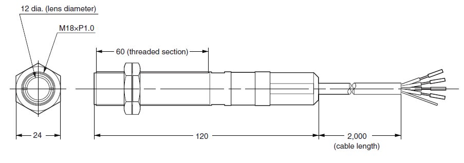 Sensore di temperatura a raggi infrarossi ES1C, corpo in acciaio inox, 0...400 °C, uscita analogica 4...20 mA, cavo 2m