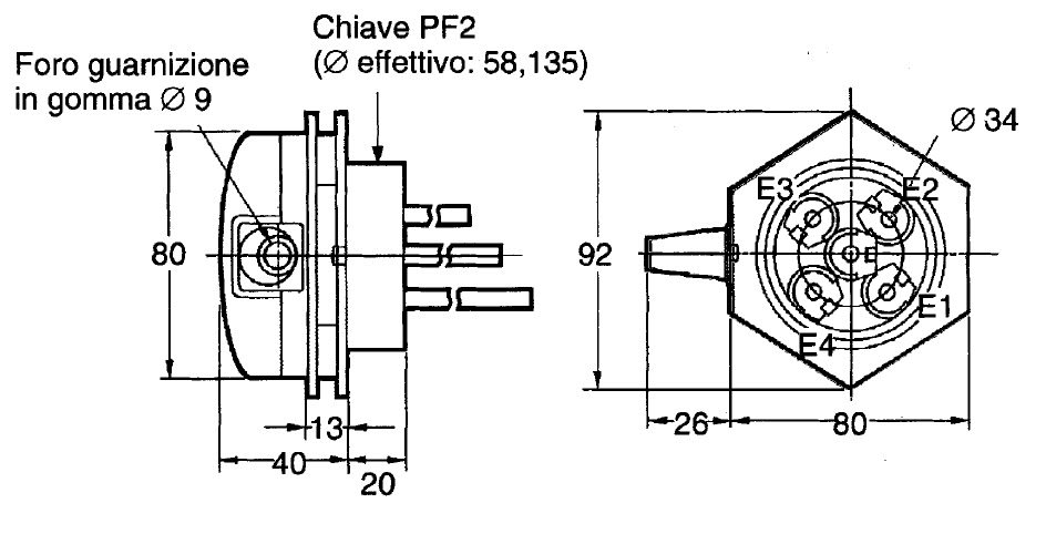 Portaelettrodi PS-4S per regolatori di livello conduttivi predisposto per 4 elettrodi diam. = 6 mm, attacco filettato 2” PF