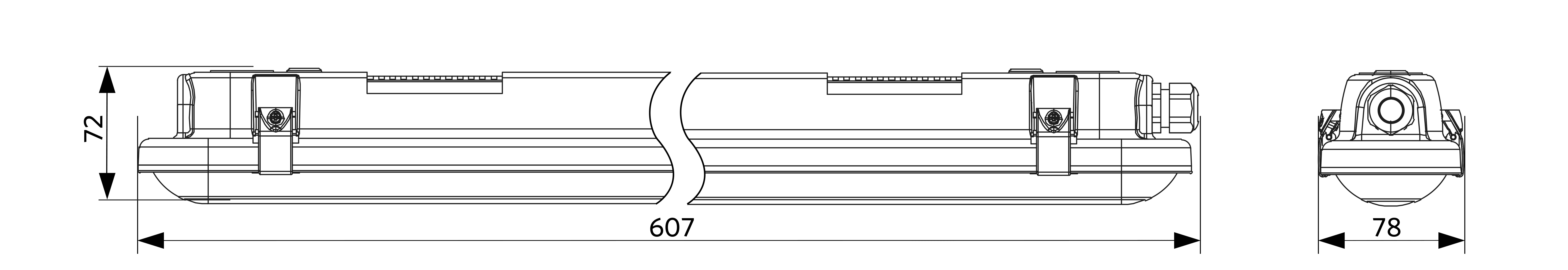 Soluzione stagna classica piu elegante con design a clip . Efficienza fino di 150 lm/W. Design ottimizzato del diffusore per un'illuminazione piu uniforme. Possibilita di cablaggio posteriore e laterale. Fornito di clip in acciaio inossidabile per il montaggio a sospensione. Kit passanti disponibili come accessorio.