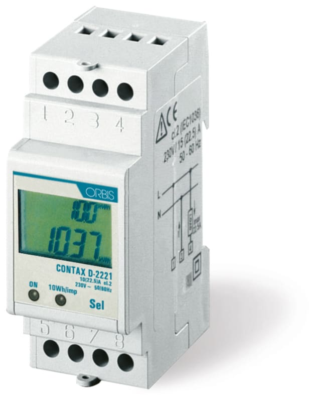ORBIS - ORBOB708700 CONTAX D-2221 Contatore monofase energia attiva, 2 Moduli, 22.5A, inserzione diretta, display digitale, lampeggio LED 10Wh/imp