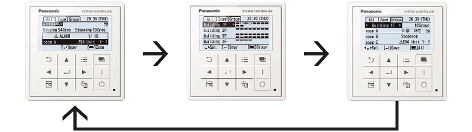 Comando centralizzato con timerTutte le funzioni in un unico dispositivoIl dispositivo di controllo CZ-64ESMC3 è dotato di timer programmabile Panasonic. La flessibilità del timer consente di programmare quando riscaldare o raffrescare gli ambientisotto il controllo del dispositivo. Gli utenti possono programmare il sistema in vista delle vacanze, sospendere l'operatività per lunghi periodi di tempo, così da evitare di riscaldare o raffrescare una casa o degli uffici vuoti, con conseguente importante risparmio energetico. Il modulo di controllo di sistema consente di programmare fino a 6 eventi al giorno.