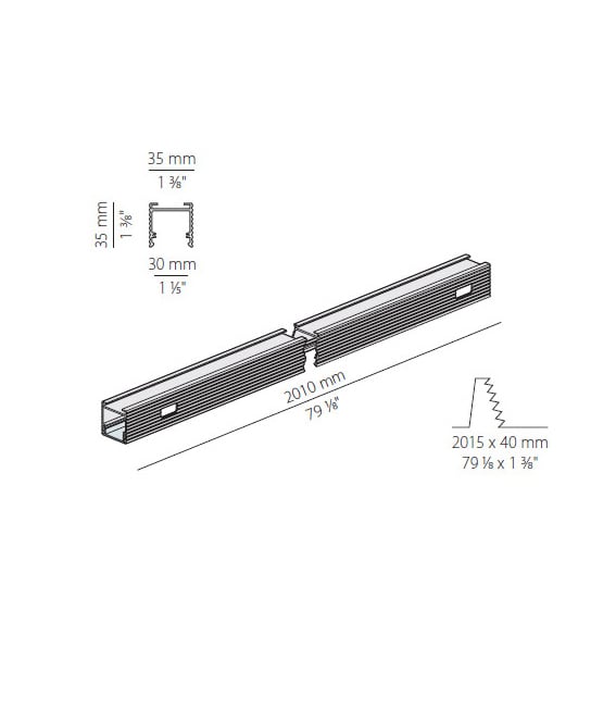 Profilo componibile per installazione incassata a soffitto o parete in ambienti interni, con emissione diretta. Struttura a scomparsa per l'incasso in cartongesso, in alluminio estruso con verniciatura a polvere in colore bianco RAL 9003. Schermo diffusore in policarbonato estruso con finitura opalina. Fornito completo di schermo monouso per rasatura, stuccatura e verniciatura della superficie di installazione. Moduli luminosi e alimentatore da ordinare separatamente. Accessori di fissaggio, giunzione e chiusura da ordinare separatamente. Dimensione del foro di incasso: 2015x40mm (40x1,6"). Sorgente luminosa LED. Distribuzione luminosa fascio diffuso. Alimentazione 24V DC. Driver remoto non incluso. Peso 0,8300Kg. Grado di protezione IP40.