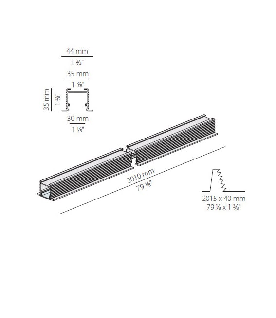 Profilo componibile per installazione incassata a soffitto o parete in ambienti interni, con emissione diretta. Struttura per l'incasso in cartongesso, in alluminio estruso con verniciatura a polvere in colore bianco RAL 9003. Schermo diffusore in policarbonato estruso con finitura opalina. Moduli luminosi e alimentatore da ordinare separatamente. Accessori di fissaggio, giunzione e chiusura da ordinare separatamente. Dimensione del foro di incasso: 2015x40mm (40x1,6"). Potenza assorbita dal sistema max 46W/m. Sorgente luminosa LED. Distribuzione luminosa fascio diffuso. Alimentazione 24V DC. Driver remoto non incluso. Peso 0,6650Kg. Grado di protezione IP40.