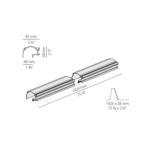 Profilo componibile per installazione incassata a soffitto o parete in ambienti interni, con emissione indiretta. Struttura a scomparsa per l'incasso in cartongesso, in alluminio estruso con verniciatura a polvere in colore bianco RAL 9003. Dissipatore in alluminio estruso. Schermo diffusore in policarbonato estruso con finitura opalina. Moduli luminosi e alimentatore da ordinare separatamente. Accessori di fissaggio, giunzione e chiusura da ordinare separatamente. Potenza assorbita dal sistema max 35W/m. Sorgente luminosa LED. Distribuzione luminosa fascio diffuso. Alimentazione 24V DC. Driver remoto non incluso. Peso 2,6350Kg. Grado di protezione IP20. 1920 mm