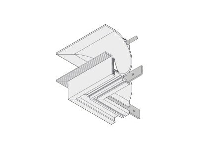 Elemento di collegamento per due linee di profili componibili con angolo 4 di giunzione orizzontale esterno di 90° per installazione incassta a scomparsa parete-parete / soffitto-soffitto misure esterne 110x110mm. Bianco opaco.