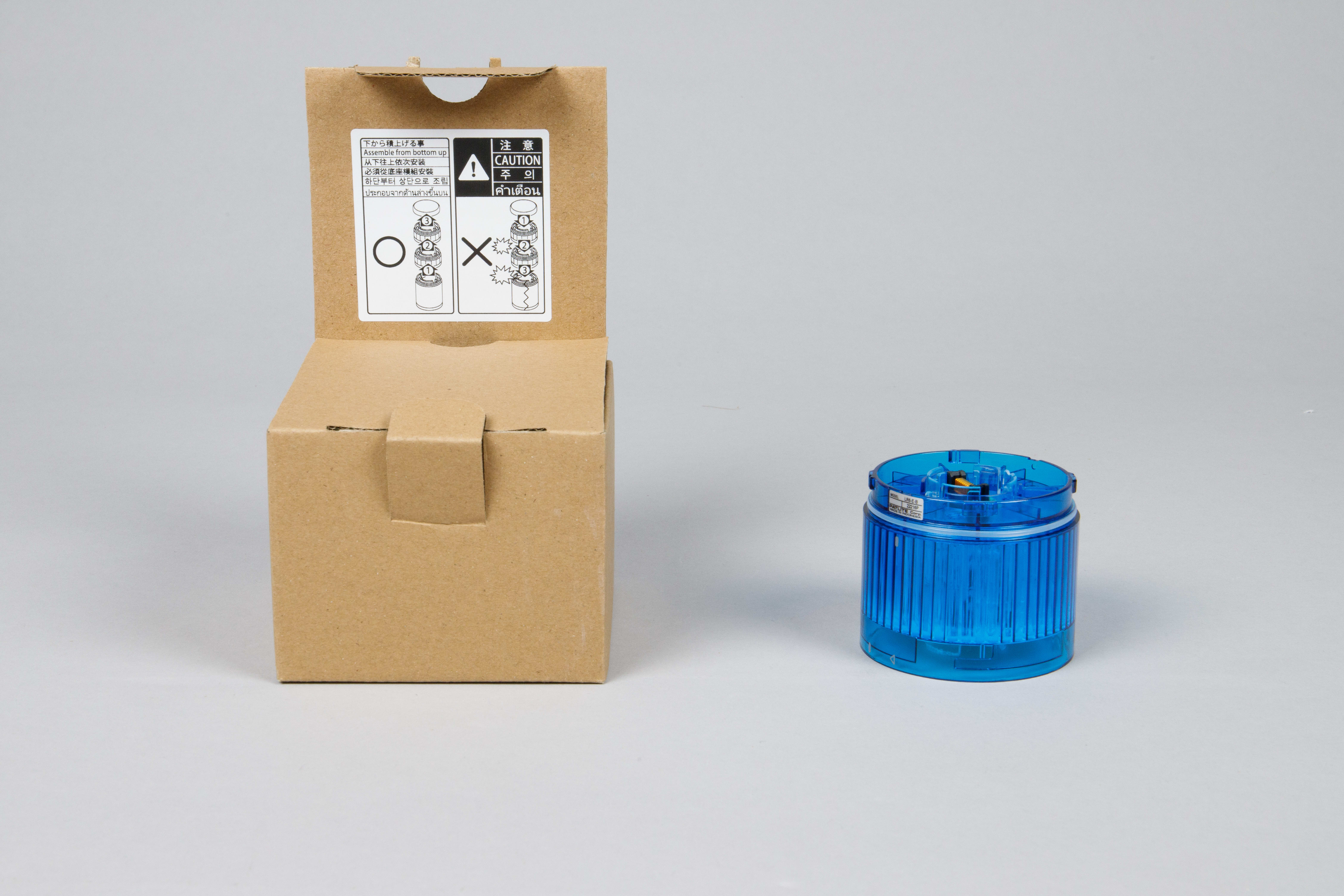 LR signal towers provide illuminated and optional audible status indication for machines and systems.Delivering superior visibility and sound for unambiguous indication, robust construction for harsh, wet environments, and a modular system for easy customizations, the LR Series is equipped to solve the most challenging applications. Modular design Twist and Lock, to easily customize and field configure LED units and sound modules. Smooth surface design and a rugged body construction for performance in harsh environments, carrying an IP65 protection rating. Unique lens and light module construction, the LR series provides brilliant, even light for visibility at further distances. Completely enclosed sound module, maintains substantial water and dust protection while producing loud, omni-directional sound. Features and Conformity Standards, Blue LED module, 60mm diameter, Colored lens, Continuous/flashing (buzzer module required), For use with LR6 base module (24VDC/100-240VAC), RoHS Directive (EN IEC 63000)