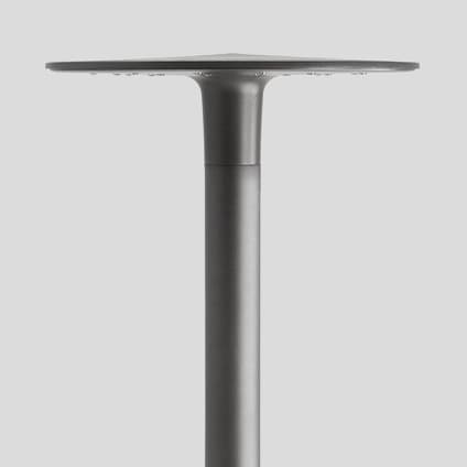 Apparecchio su palo per esterni per illuminazione generale, costituito da: Corpo e coperchio in alluminio pressofuso verniciato. Attacco a palo in alluminio pressofuso verniciato polveri poliestere per pali Ø 60 - Ø 76 mm. Guarnizione in silicone antinvecchiamento. Pressacavo antistrappo M25x1,5 per cavi Ø 9 - Ø 14 mm. Connessione elettrica esterna tramite connettore stagno QUICK, completo di cavo. Le versioni LED sono fornite complete di alimentatore 220/240 V 50/60 Hz. Versione dimmerabile 1-10 V. OgniLED è accoppiato con un dispositivo elettronico di di sicurezza (NUD) in grado di by-passarlo in caso di guasto. La versione LED è completa di LED a luce bianca 4000 K. Viteria esterna in acciaio inox. Sistema "SECURE LIGHT DISTRIBUTION"che garantisce l'uniformità della distribuzione luminosa anche in caso di inefficienza di qualche LED. Processo di verniciatura in 13 differenti passaggi in polveri di poliestere ad alta resistenza contro raggi UV ed agenti atmosferici. Classe II. Attacco: LED. Watt: N. 28 LED - 44 W. Colore: ANTRACITE METALLIZZ. OPACO. Classe isolamento: II. KELVIN: 4000. IK: IK10 20J xx9. Ottica: OTTICA CIRCOLARE EXTRA DIFFONDENTE. Flusso nominale: 5236 lm. Flusso effettivo: 3301 lm. Lifetime: 60000 h. L: 80.