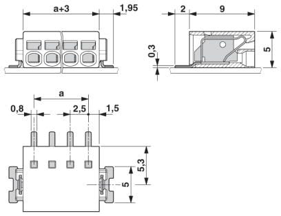Connessione Push-in rapida senza utensili. La forza di contatto definita garantisce una stabilità della connessione per lungo tempo. Elevata portata di corrente di 6 A con dimensioni minime. Strutturato per l'integrazione nel processo di saldatura SMT. Iganci a saldare aggiuntivi riducono la sollecitazione meccanica delle parti saldate.