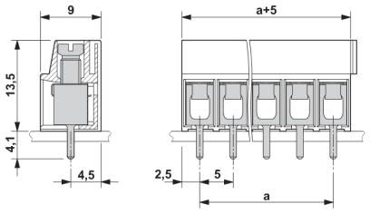 Angolo circuito stampato/collegamento del conduttore - 0°/180° (orizzontale)