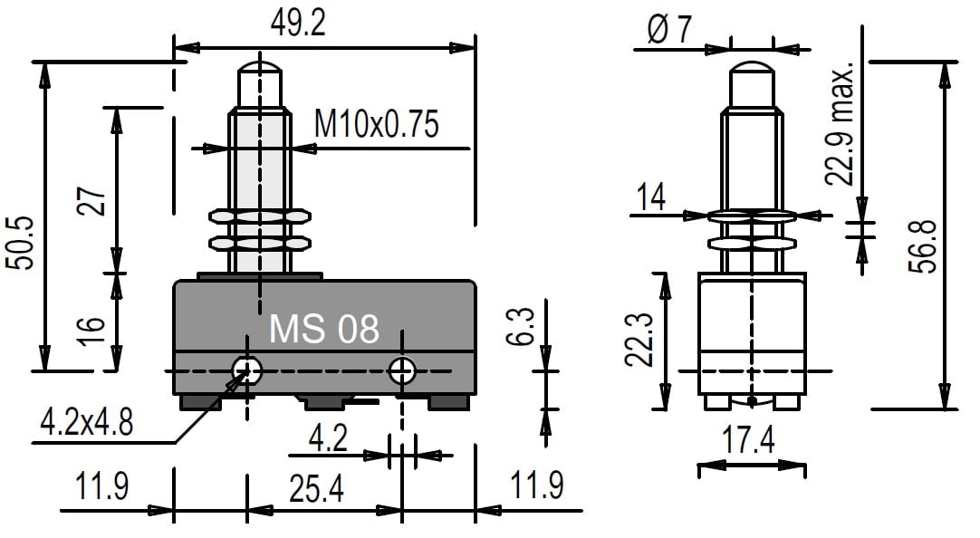 PIZZATO ELETTRICA - PZZMS 08 MICROINTERRUTTORE A PULSANTE FILETTATO - MS 08